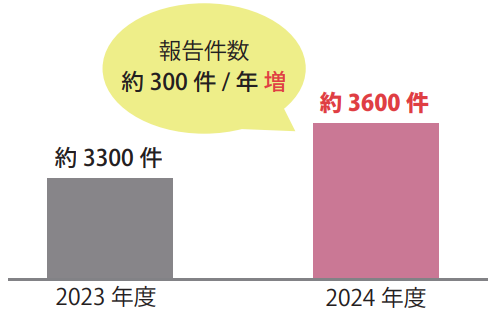 報告件数は増加しましたね。2023 年度の報告件数は約 3300 件でしたが、2024 年度は約 3600件でした。