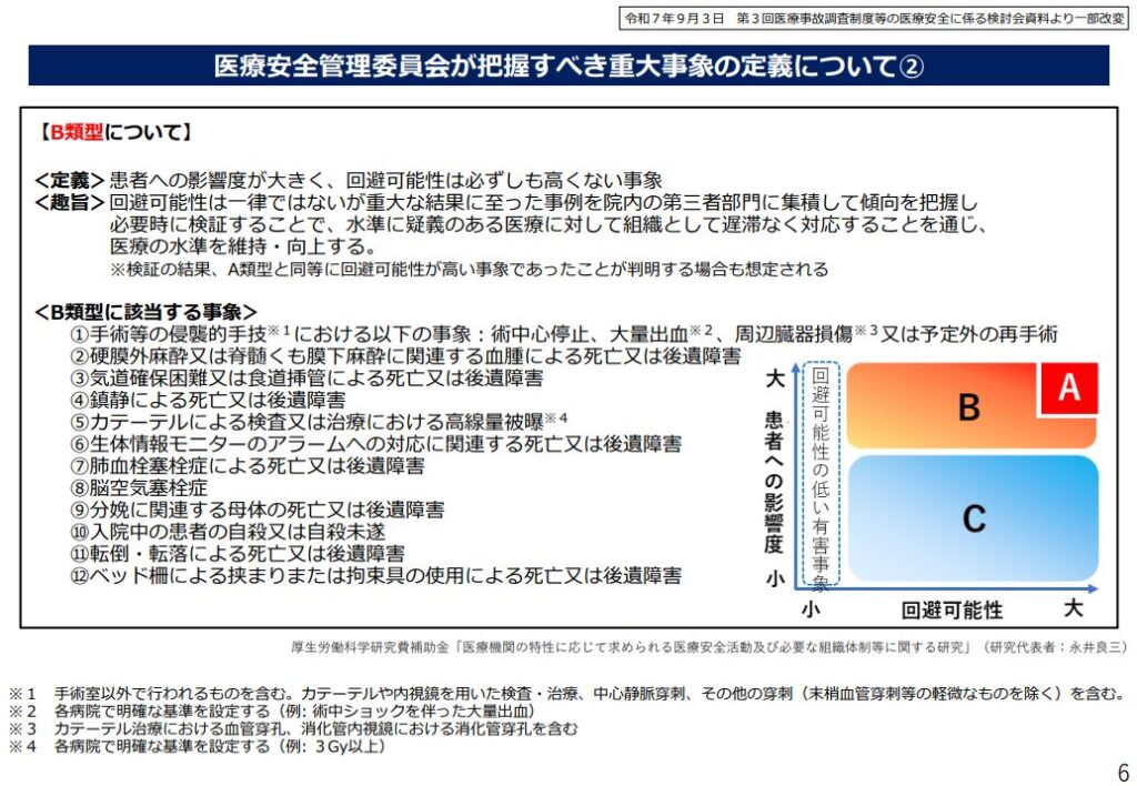 基本的には、死亡や後遺障害などが発生するようなレベル4・5以上の事業が類型として例示されています。一度、具体的なA類型12事象・B類型12事象についてはご確認ください。