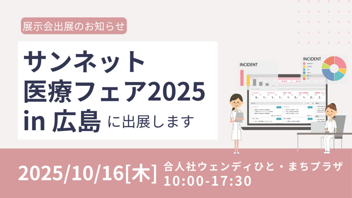 サンネット医療フェア2025へ、「医療安全管理 インシデントレポートシステム e-Riskn(イーリスクん)」を出展します。
